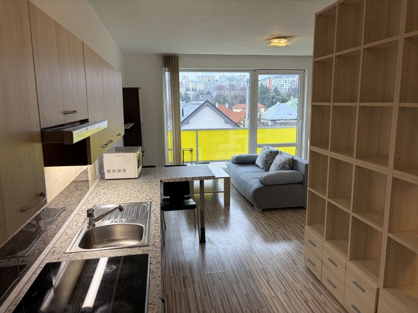 Veľmi pekný 1-i byt na Wolkerovej ulici, na 3.poschodí novostavby obytného domu s výťahom. Byt je kompletne a elegantne zariadený nábytkom a spotrebičmi. K bytu patrí aj balkón. Dom má vlastnú kotolňu. Výhodou je pekný výhľad, komplexná infraštruktúra a blízkosť MHD. Parkovanie je zabezpečené na vyhradenom parkovisku.